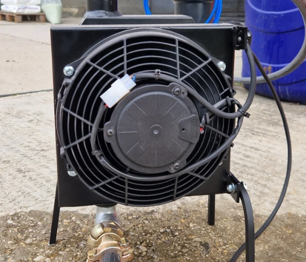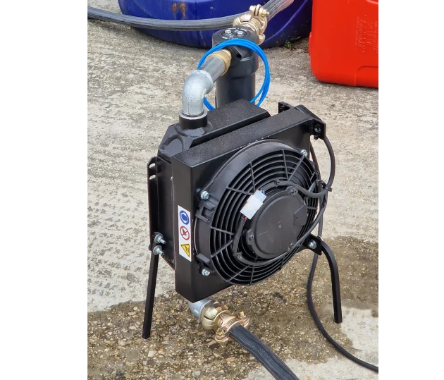 A benzin vagy diesel kompresszorból érkező levegőt (~90°C) a 12V-os hűtő ventillátor segítségével lehűti kb. +9°C-kal a környezeti hőmérséklet fölé. A lehűtött levegőben lévő pára kicsapódik; a vizet és az olajat a ciklonleválasztó eltávolítja és a száraz, tisztított levegő jut tovább a szemcseszóró géphez.